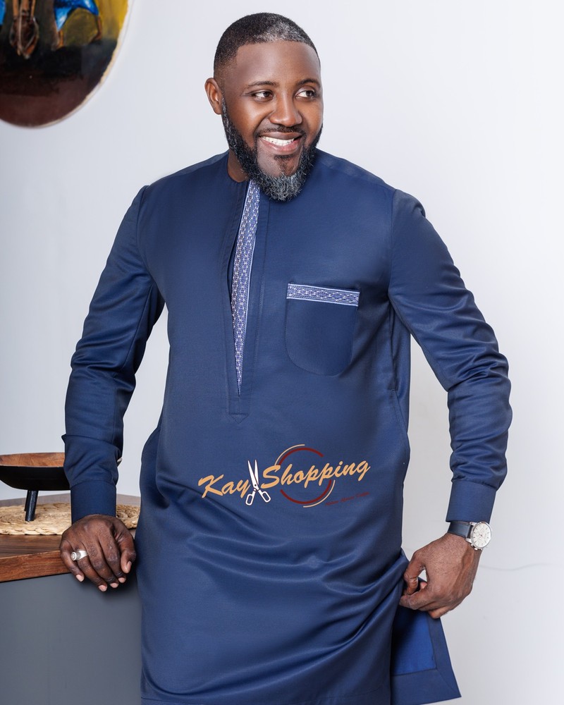 COSTUME AFRICAIN BLEU livré avec un pantalon classique ou avec un cordon de serrage pour plus de facilité. Fabriqué avec de la laine, un tissu très confortable et adapté à tous types de climats.