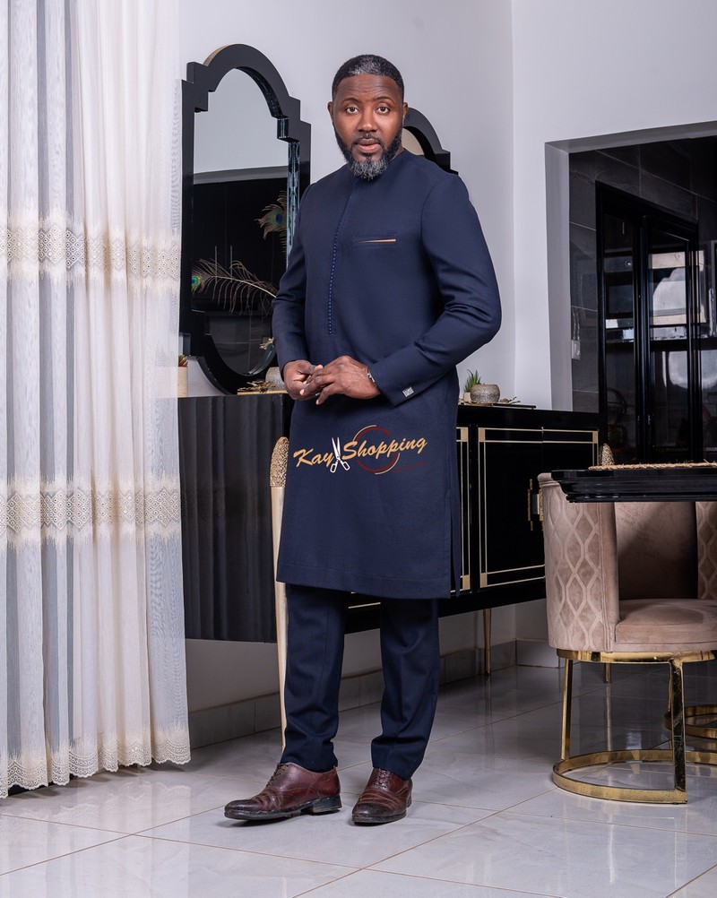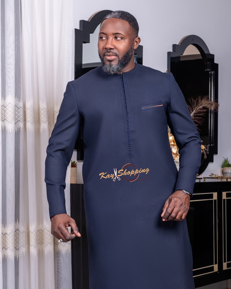 COSTUME AFRICAIN BLEU livré avec un pantalon classique ou avec un cordon de serrage pour plus de facilité. Fabriqué avec de la laine, un tissu très confortable et adapté à tous types de climats.