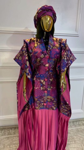 This boubou is a timeless blend of cultural elegance and modern sophistication. Typically crafted from high-quality fabric it showcases intricate patterns, bold colors, and metallic accents. Its flowing silhouette ensures both comfort and a regal appearance, perfect for formal events and celebrations.
