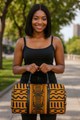 Explore the world with ease and style with our African Duffel Leather Bag in Kuba Brown Print. Made with high-quality leather, this bag is perfect for your travels. Its spacious design allows you to pack all your essentials and more, while the unique African print adds a touch of culture to your journey. Experience the perfect combination of fashion and function. Product Description * Made of New high-grade PU leather, not easily wrinkled. • Features PU leather top handle and binding for comfortable carrying. • One main compartment, big enough to bring clothing, cosmetic bag, sunglasses • Come with adjustable shoulder strap with metal clips. • Suitable for workout and short-term or long-term travel. • Wipe gently with cloth. Delivery Time This item will be processed within 3-7 business days (Excluding Weekends and Holidays). Once products ships it can take up to 15 Business days depending on your location. Out of Stock items can be requested by emailing us at [email protected] Care Instructions Machine wash cold inside out. Gentle cycle with mild detergent and like colors. Do not use bleach or fabric softener. Do not tumble dry. Hang to dry to ensure maximum shelf life. Iron inside out if necessary. Do not iron the print. Do not dry clean.