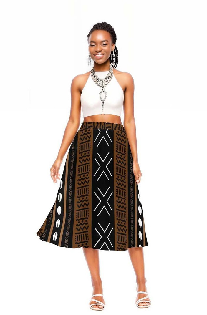 Elevate your style with our African Fashion Skirt! Featuring a bold Cowrie Print, this Midi Length Flared skirt is sure to make a statement. Perfect for any risk-takers, this skirt adds a touch of adventure to your wardrobe. Embrace your adventurous side and stand out in this unique piece!
