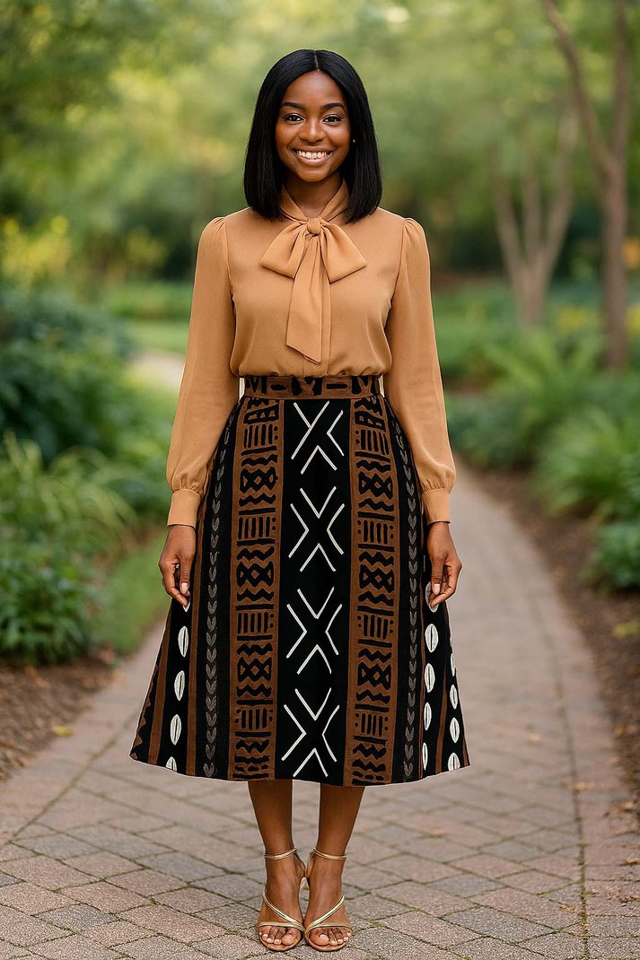 Elevate your style with our African Fashion Skirt! Featuring a bold Cowrie Print, this Midi Length Flared skirt is sure to make a statement. Perfect for any risk-takers, this skirt adds a touch of adventure to your wardrobe. Embrace your adventurous side and stand out in this unique piece! Product Features Please Compare your Measurements To our Size Chart before purchase Fabric: 100% polyester * Regular fit * Waist elastic band * Fabric weight: 80g/m² Delivery Time This item will be processed within 3-7 business days (Excluding Weekends and Holidays). Once products ships it can take up to 15 Business days depending on your location. Out of Stock items can be requested by emailing us at [email protected] Care Instructions Machine wash cold inside out. Gentle cycle with mild detergent and like colors. Do not use bleach or fabric softener. Do not tumble dry. Hang to dry to ensure maximum shelf life. Iron inside out if necessary. Do not iron the print. Do not dry clean.