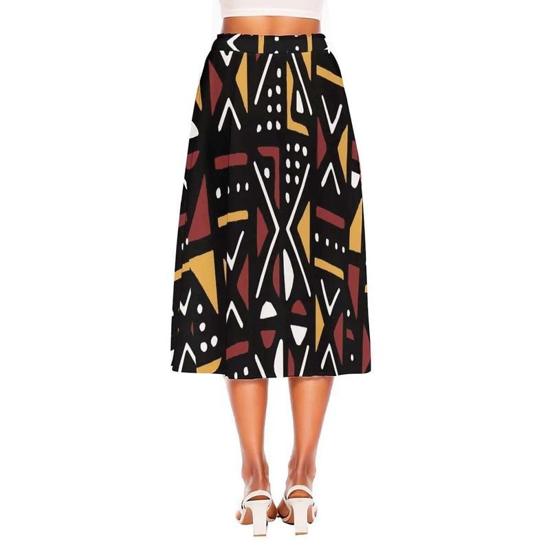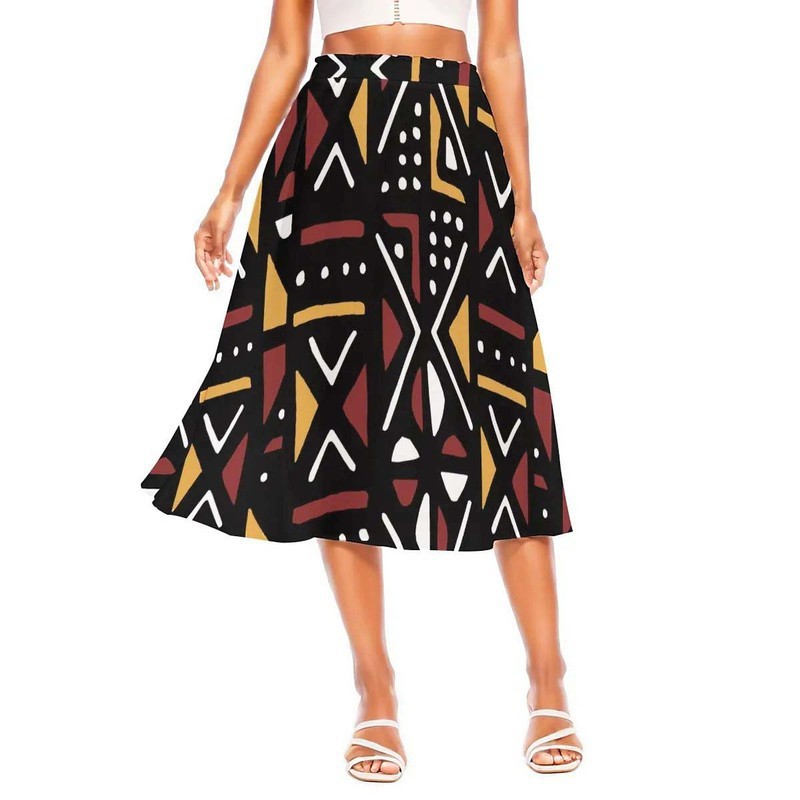 Unleash your adventurous spirit with our African Flare Skirt Bogolan Print! Designed to make a bold statement, this midi length flared skirt is crafted from traditional Bogolan fabric for a unique and daring look. Feel confident and empowered as you take on the world in this high-waisted and flared skirt. Make a statement and stand out from the crowd! Product Features Please Compare your Measurements To our Size Chart before purchase Fabric: 100% polyester * Regular fit * Waist elastic band * Fabric weight: 80g/m² Delivery Time This item will be processed within 3-7 business days (Excluding Weekends and Holidays). Once products ships it can take up to 15 Business days depending on your location. Out of Stock items can be requested by emailing us at [email protected] Care Instructions Machine wash cold inside out. Gentle cycle with mild detergent and like colors. Do not use bleach or fabric softener. Do not tumble dry. Hang to dry to ensure maximum shelf life. Iron inside out if necessary. Do not iron the print. Do not dry clean.
