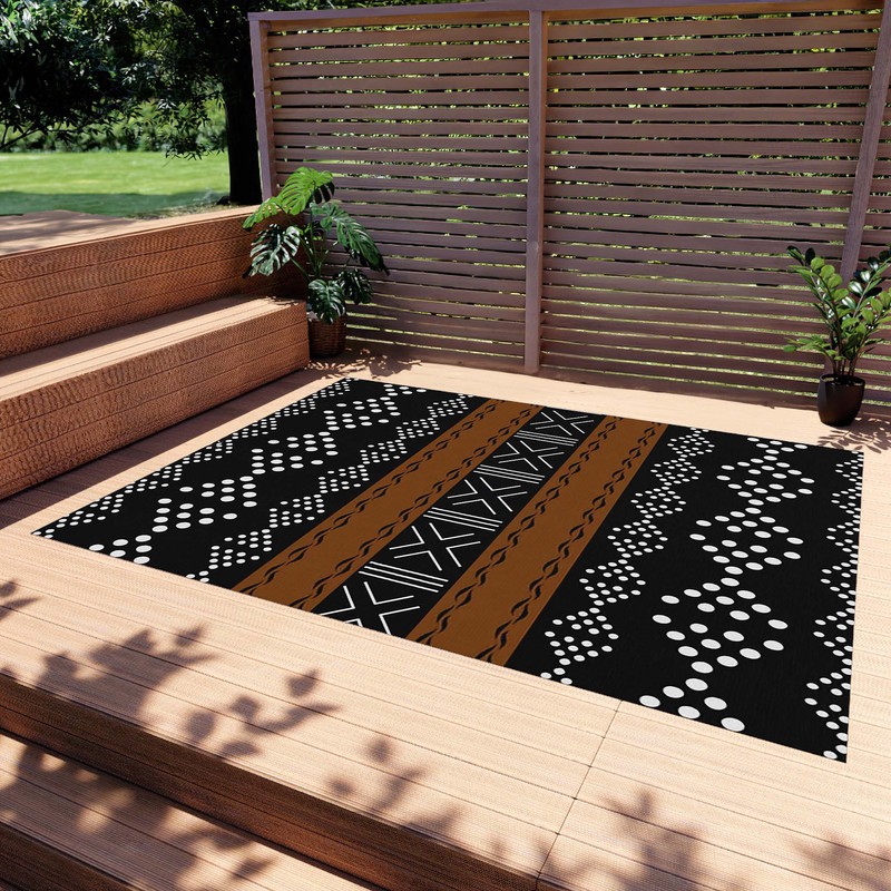 Transform your outdoor space into a daring and adventurous African safari with our African Habitat Outdoor Rug. This rustic mudcloth ethnic carpet will add a touch of culture and boldness to any outdoor setting. Embrace the wild and take a risk with this unique and eye-catching rug!