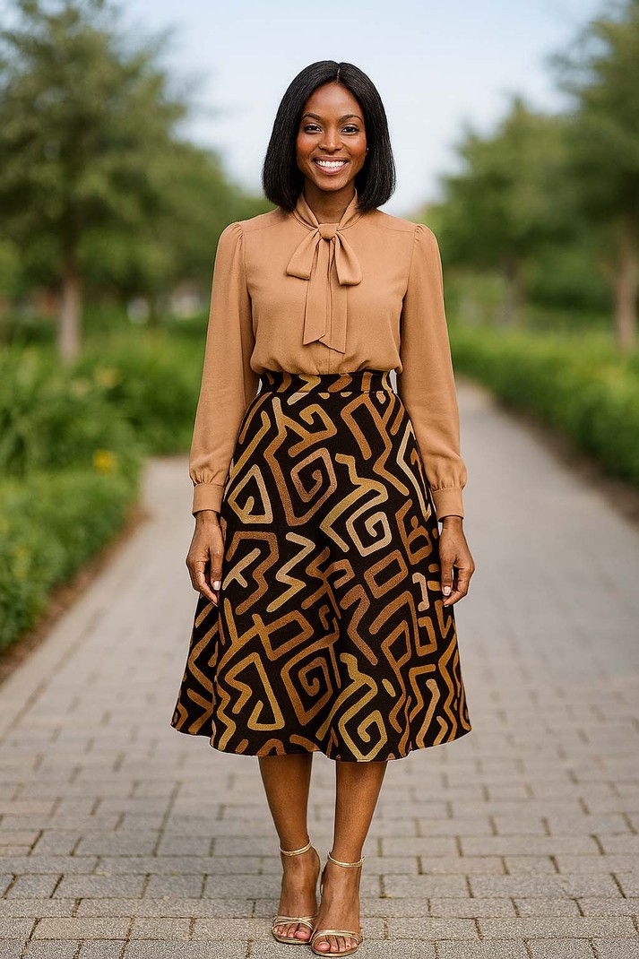 Unleash your daring and adventurous spirit with our African High Waist Skirt. Featuring a stunning Kuba print in a midi length, this flared skirt will elevate your style and make you stand out in any crowd. Embrace the challenge and step out in bold confidence with this unique and eye-catching piece.
