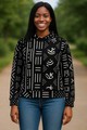 This African hoodie for women features traditional bogolan print fabric. The lightweight design ensures comfortable wear in any weather, and the extended hood ensures optimal coverage from the elements. The stylish print adds a unique and eye-catching detail, creating a chic and fashionable look.