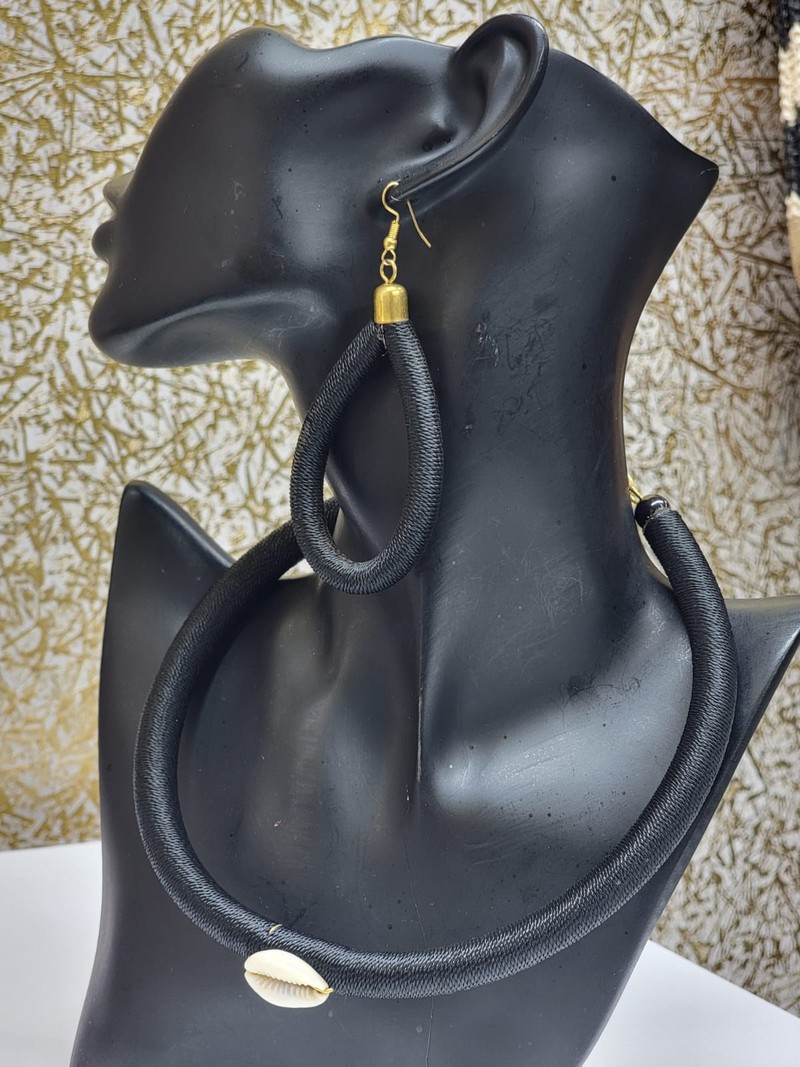 This beaded necklace and earrings set, handcrafted by talented artisans in Kenya, showcases the finest locally sourced materials. Blending rich cultural traditions with exquisite craftsmanship, each piece is designed to add a bold, effortless elegance to your look.