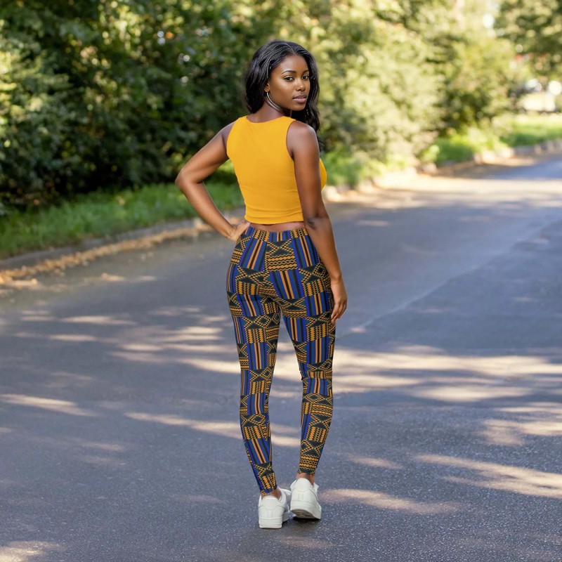 These African Kente Leggings for Women are made from a lightweight, stretchy polyester and spandex blend for maximized comfort and flexibility. With vibrant colors and intricate kente design, these breathable leggings are perfect for exercise, yoga, or any type of physical activity. Product Features Please Compare your Measurements To our Size Chart before purchase • Fabric is 82% polyester, 18% spandex • Four-way stretch • Elastic waistband • Precision-cut and hand-sewn • Fabric weight: 6.61 oz/yd² (224 g/m²) • 38-40 UPF • Overlock and coverstitch • Printed, cut, and hand-sewn by our in-house team • Four-way stretch, which means fabric stretches and recovers both on the cross and lengthwise grains • Made of a microfiber yarn, which is smooth and comfortable Delivery Time This item will be processed within 3-7 business days (Excluding Weekends and Holidays). Once products ships it can take up to 15 Business days depending on your location. Out of Stock items can be requested by emailing us at [email protected] Care Instructions Machine wash cold inside out. Gentle cycle with mild detergent and like colors. Do not use bleach or fabric softener. Do not tumble dry. Hang to dry to ensure maximum shelf life. Iron inside out if necessary. Do not iron the print. Do not dry clean.