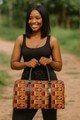 Travel in style with our African Leather Bag featuring a unique Kente Pattern. Made from high-quality leather, this bag is durable and perfect for all your travel needs. The traditional Kente Pattern adds a touch of cultural flair to your travels. Product Description * Made of New high-grade PU leather, not easily wrinkled. • Features PU leather top handle and binding for comfortable carrying. • One main compartment, big enough to bring clothing, cosmetic bag, sunglasses • Come with adjustable shoulder strap with metal clips. • Suitable for workout and short-term or long-term travel. • Wipe gently with cloth. Delivery Time This item will be processed within 3-7 business days (Excluding Weekends and Holidays). Once products ships it can take up to 15 Business days depending on your location. Out of Stock items can be requested by emailing us at [email protected] Care Instructions Machine wash cold inside out. Gentle cycle with mild detergent and like colors. Do not use bleach or fabric softener. Do not tumble dry. Hang to dry to ensure maximum shelf life. Iron inside out if necessary. Do not iron the print. Do not dry clean.
