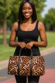Crafted with the finest African PU leather, this travel bag features a unique Kuba doddled pattern. Its durable design ensures a long-lasting and stylish accessory for your travels. Expertly made with intricate detailing and high-quality material, this bag is the perfect blend of functionality and aesthetics. Product Description * Made of New high-grade PU leather, not easily wrinkled. • Features PU leather top handle and binding for comfortable carrying. • One main compartment, big enough to bring clothing, cosmetic bag, sunglasses • Come with adjustable shoulder strap with metal clips. • Suitable for workout and short-term or long-term travel. • Wipe gently with cloth. Delivery Time This item will be processed within 3-7 business days (Excluding Weekends and Holidays). Once products ships it can take up to 15 Business days depending on your location. Out of Stock items can be requested by emailing us at [email protected] Care Instructions Machine wash cold inside out. Gentle cycle with mild detergent and like colors. Do not use bleach or fabric softener. Do not tumble dry. Hang to dry to ensure maximum shelf life. Iron inside out if necessary. Do not iron the print. Do not dry clean.