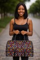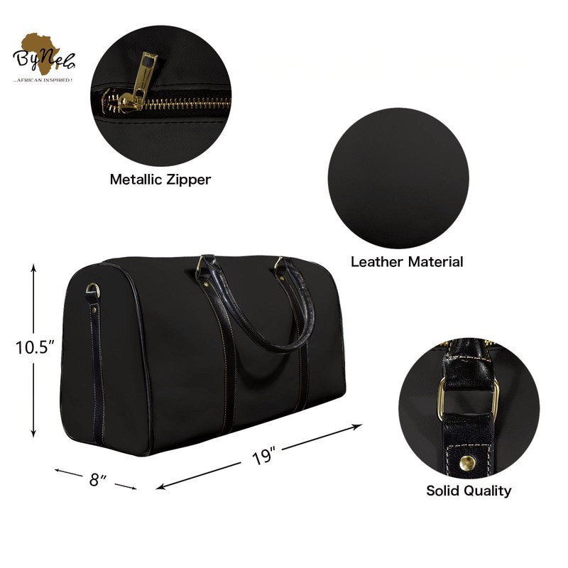 This African leather bag is perfect for travel, with its durable construction and unique mud cloth abstract pattern. Handcrafted by artisans, each bag is one-of-a-kind. The sturdy leather straps ensure comfortable carrying, while the spacious interior provides ample space for all your essentials. Product Description * Made of New high-grade PU leather, not easily wrinkled. • Features PU leather top handle and binding for comfortable carrying. • One main compartment, big enough to bring clothing, cosmetic bag, sunglasses • Come with adjustable shoulder strap with metal clips. • Suitable for workout and short-term or long-term travel. • Wipe gently with cloth. Delivery Time This item will be processed within 3-7 business days (Excluding Weekends and Holidays). Once products ships it can take up to 15 Business days depending on your location. Out of Stock items can be requested by emailing us at [email protected] Care Instructions Machine wash cold inside out. Gentle cycle with mild detergent and like colors. Do not use bleach or fabric softener. Do not tumble dry. Hang to dry to ensure maximum shelf life. Iron inside out if necessary. Do not iron the print. Do not dry clean.