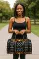 Expertly crafted from genuine African leather, this travel bag features a unique mud cloth and cowrie shell print. Its spacious interior and sturdy construction make it the perfect accessory for any trip. Experience the rich culture and craftsmanship of Africa while on the go. Product Description * Made of New high-grade PU leather, not easily wrinkled. • Features PU leather top handle and binding for comfortable carrying. • One main compartment, big enough to bring clothing, cosmetic bag, sunglasses • Come with adjustable shoulder strap with metal clips. • Suitable for workout and short-term or long-term travel. • Wipe gently with cloth. Delivery Time This item will be processed within 3-7 business days (Excluding Weekends and Holidays). Once products ships it can take up to 15 Business days depending on your location. Out of Stock items can be requested by emailing us at [email protected] Care Instructions Machine wash cold inside out. Gentle cycle with mild detergent and like colors. Do not use bleach or fabric softener. Do not tumble dry. Hang to dry to ensure maximum shelf life. Iron inside out if necessary. Do not iron the print. Do not dry clean.