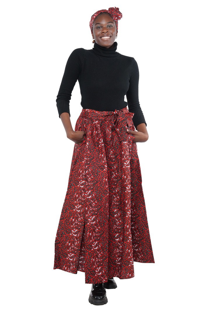 Product Description: African Long Maxi Skirt - 100% Cotton Embrace the vibrant spirit of African culture with our stunning long maxi skirt, crafted from 100% high-quality cotton. This eye-catching piece features an array of traditional prints and bold colors, designed to make a statement wherever you go. Key Features: Material: Made from soft, breathable 100% cotton for ultimate comfort and durability. Design: Flowing silhouette that drapes beautifully, perfect for any occasion—from casual outings to festive celebrations. Versatility: Easily pairs with a variety of tops, including fitted tanks, blouses, or cropped sweaters, making it a staple in your wardrobe. Elastic Waistband: A comfortable elastic waistband ensures a perfect fit, allowing for easy wear and movement. Cultural Inspiration: Each skirt showcases unique patterns that celebrate African artistry and craftsmanship. Fit: One Size Color: Red Gender: For Her Material: Cotton