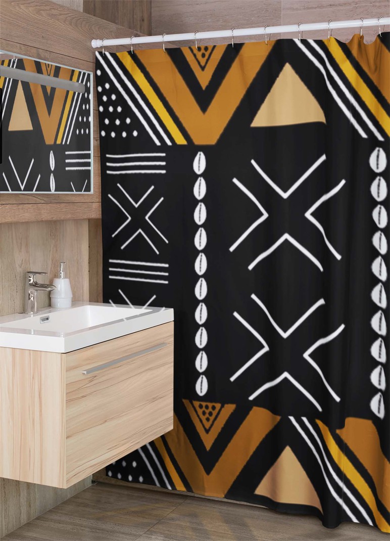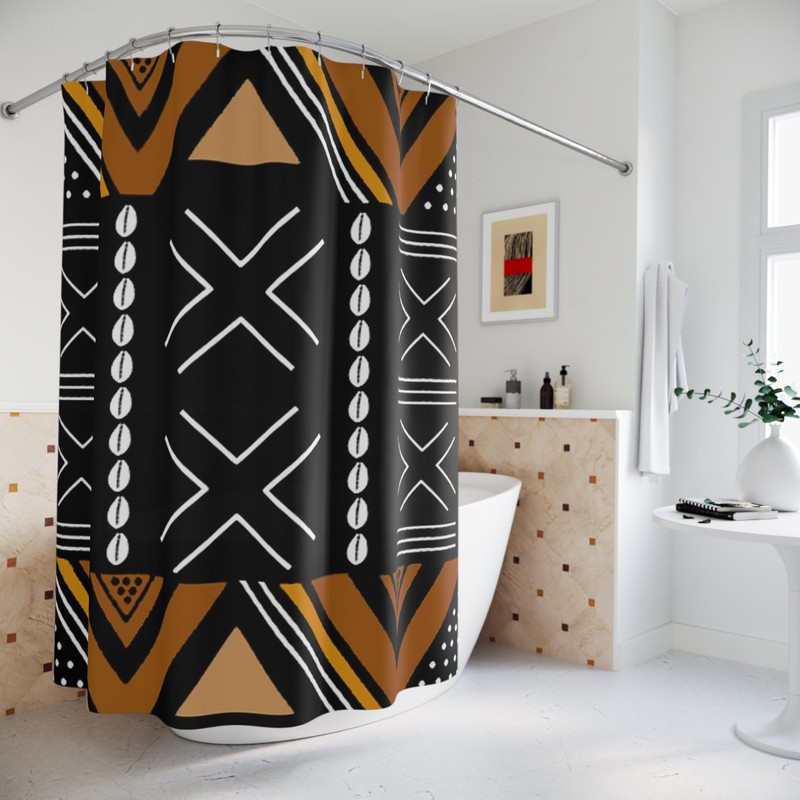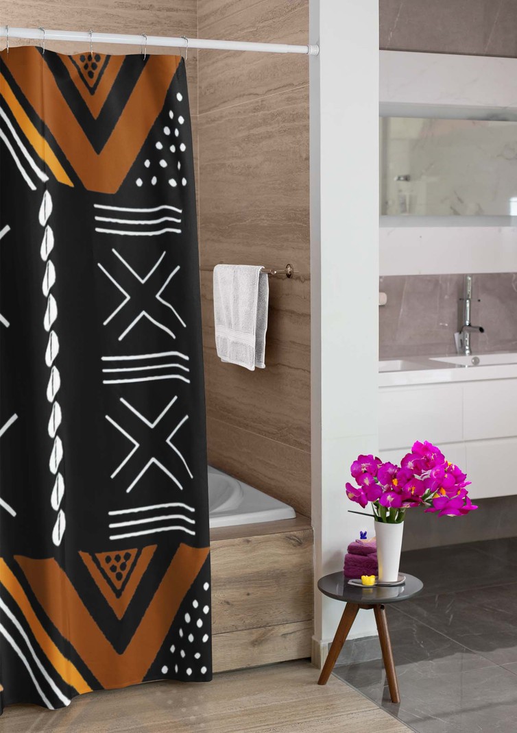Transform your bathroom into an exotic adventure with our African Mud Cloth Shower Curtain. Bold and daring, this piece will bring a sense of risk and excitement to your daily routine. The handcrafted mud cloth design adds a unique touch to your bathroom, making it a true statement piece.