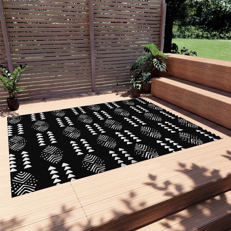 Boldly venture into the wild with our African Outdoor Rug! This ethnic carpet features a striking black and white design that adds a touch of adventure to any outdoor space. Durable and eye-catching, it's the perfect addition to any risk-taker's home décor.