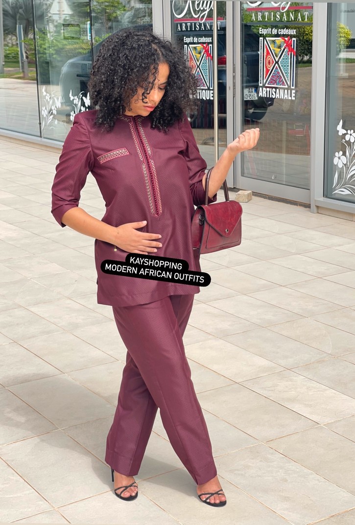 Ensemble Tenue africaine tradi-moderne avec haut et pantalon.