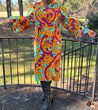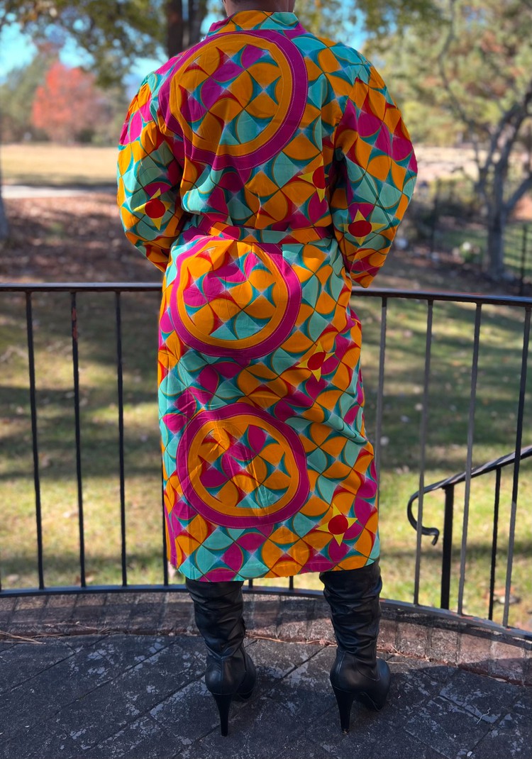 Dress made with ankara fabric. Material: Cotton Color: Multicolor Pattern Type: Ankara Fabric: Fabric has no stretch Length: 49" - One size fits most Care Instructions: Machine Wash and Air Dry/Dry Clean