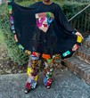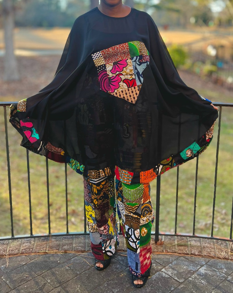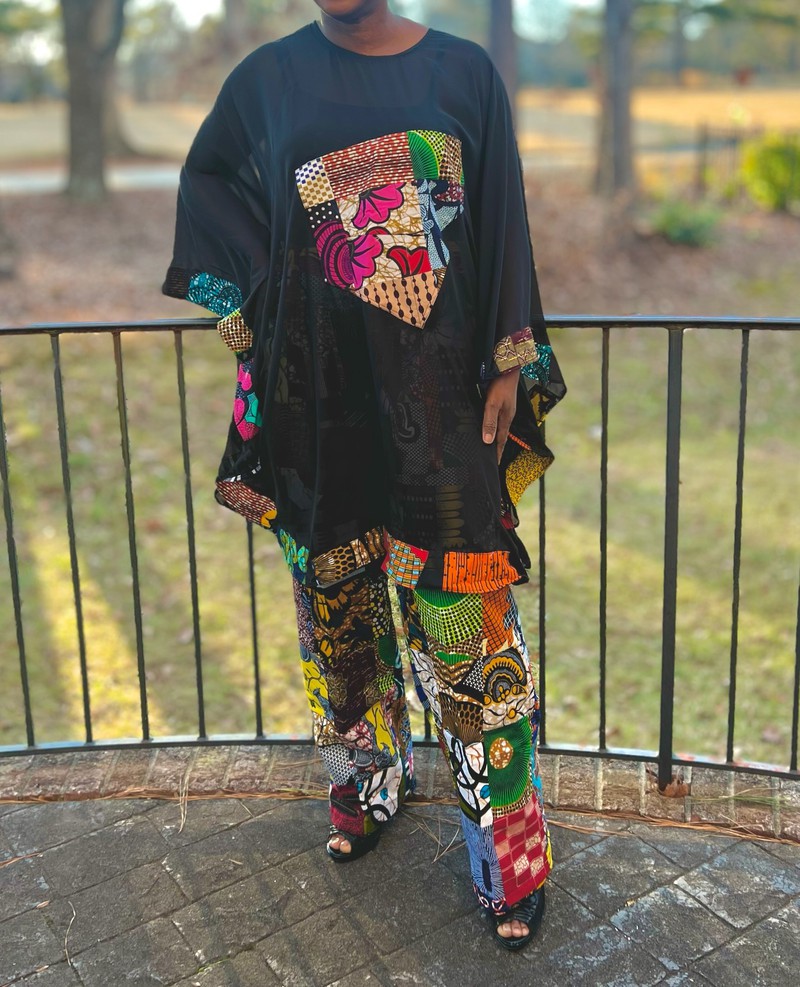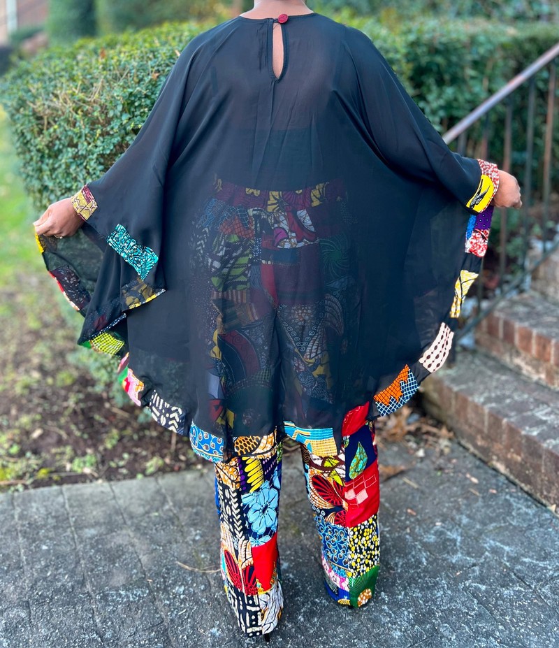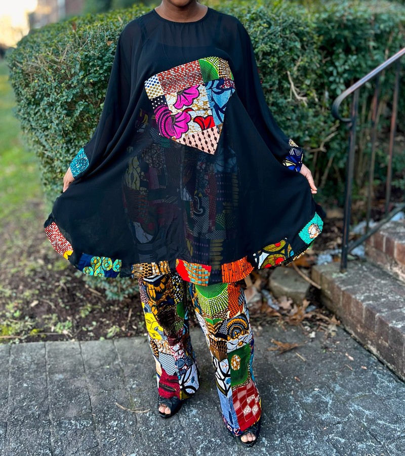 Black Multicolor asymmetrical top and pants set Chiffon Cotton Great for any occasion