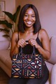 Experience the vibrant culture of Africa with our African Print Hand Bag. Made with authentic Mud Cloth and Local Print, this hand bag is a perfect blend of style and tradition. With intricate patterns and bold colors, it is sure to make a statement wherever you go. Add a touch of uniqueness to your wardrobe today.