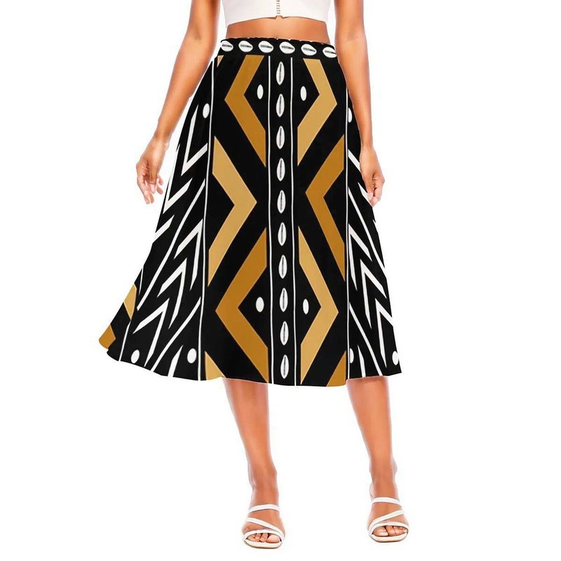 Experience the thrill of the wild with our Cowrie Zigzag African Print Midi Skirt! Featuring bold tribal patterns and stunning cowrie shell accents, this skirt is perfect for the daring and adventurous. Elevate your fashion game with this unique and stylish piece. Product Features Please Compare your Measurements To our Size Chart before purchase Fabric: 100% polyester * Regular fit * Waist elastic band * Fabric weight: 80g/m² Delivery Time This item will be processed within 3-7 business days (Excluding Weekends and Holidays). Once products ships it can take up to 15 Business days depending on your location. Out of Stock items can be requested by emailing us at [email protected] Care Instructions Machine wash cold inside out. Gentle cycle with mild detergent and like colors. Do not use bleach or fabric softener. Do not tumble dry. Hang to dry to ensure maximum shelf life. Iron inside out if necessary. Do not iron the print. Do not dry clean.