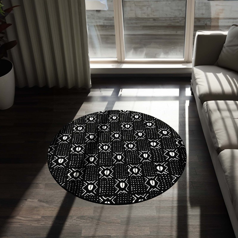 Transform your space into a bold and adventurous oasis with our African Round Rug. The striking black and white cowrie print will add a touch of daring to any room. Perfect for those who like to take risks and make a statement in their decor. Product Description = Made of 100% Polyester = Non-slip backing. = Suitable Rooms: Home Office, Parlor, Bedroom = Stain resistant, easy to vacuum, and perfect for any room and decor. = Due to transportation needs, we will fold and curl the rugs and carpets, so there will be some creases on the products you receive. = RUG SIZE - L 23.6" x W 23.6" - (60cm x 60cm) Delivery Time This item will be processed within 7-15 business days (Excluding Weekends and Holidays). Once products ships it can take up to 15 Business days depending on your location. Out of Stock items can be requested by emailing us at [email protected]