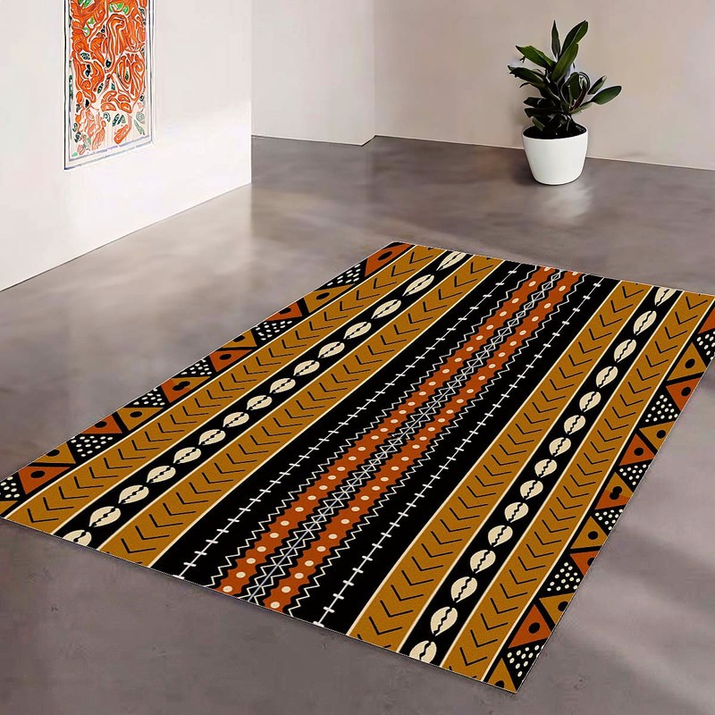 Add an exclusive touch to your living room with these African rugs featuring the unique cowrie mudcloth pattern. With their luxurious texture and design, these rugs will elevate your space and make it feel more elegant and sophisticated. Bring the beauty of African culture into your home with these premium-quality rugs. Product Description = Made of 100% Polyester = Non-slip backing. = Suitable Rooms: Home Office, Parlor, Bedroom = Stain resistant, easy to vacuum, and perfect for any room and decor. = Due to transportation needs, we will fold and curl the rugs and carpets, so there will be some creases on the products you receive. = RUG SIZE - L 23.6" x W 35.8" - (60cm x 91cm) Delivery Time This item will be processed within 7-15 business days (Excluding Weekends and Holidays). Once products ships it can take up to 15 Business days depending on your location. Out of Stock items can be requested by emailing us at [email protected]