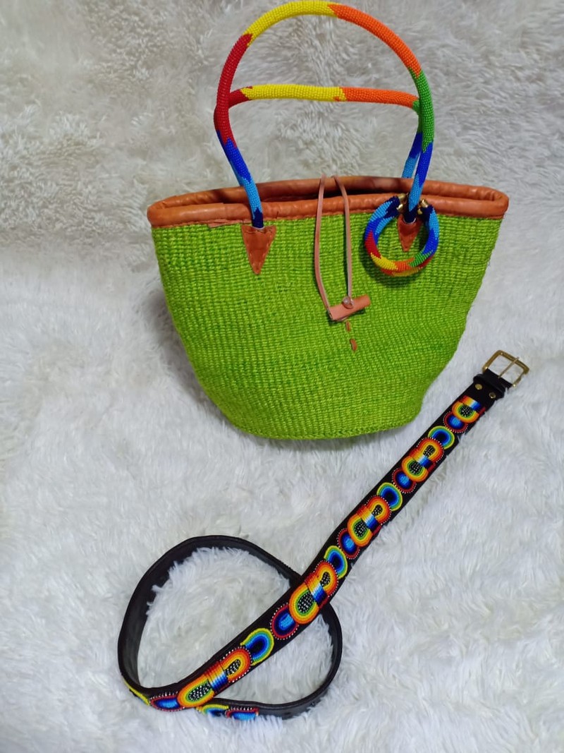 Sac à main en sisal africain Fait de poignées perlées. mode féminine. Cadeau pour elle. Accompagné d'une ceinture en cuir perlée assortie. Sac à main femme. Nous expédions via DHL Express. Tout le monde est bienvenu.