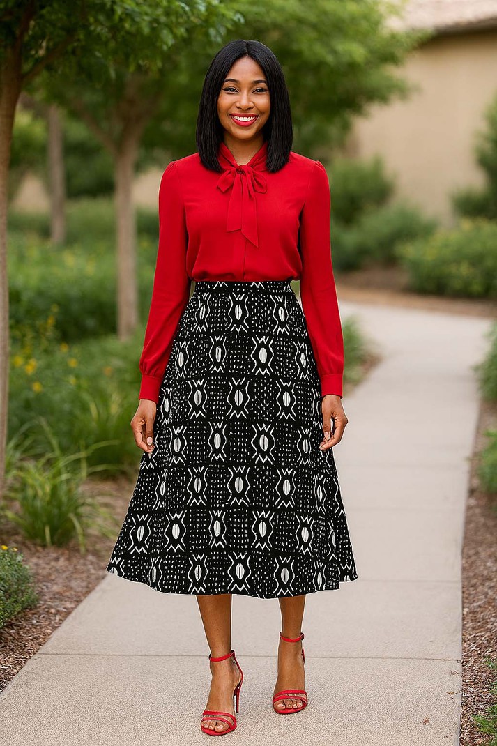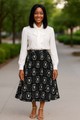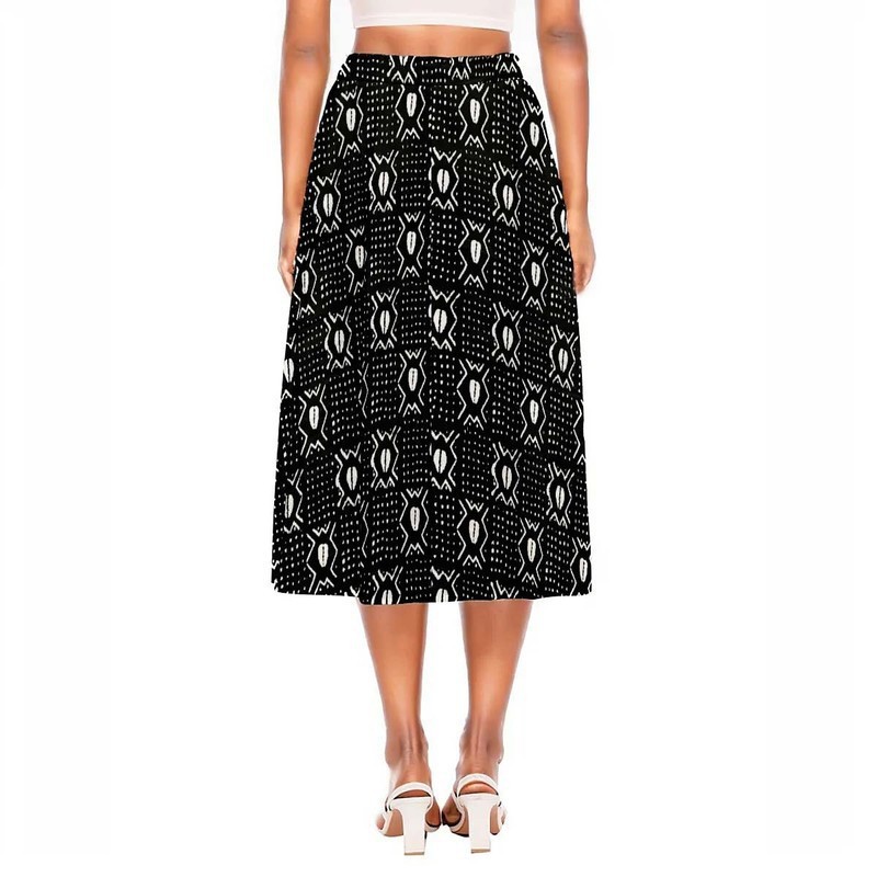 Unleash your adventurous side in our African Skirt Flared Black and White Cowrie Shell Print! This bold and flared midi-length skirt features a striking black and white print, inspired by the iconic Cowrie shell. Perfect for adding a touch of African flair to any outfit. Take on the day with confidence and style! Product Features Please Compare your Measurements To our Size Chart before purchase Fabric: 100% polyester * Regular fit * Waist elastic band * Fabric weight: 80g/m² Delivery Time This item will be processed within 3-7 business days (Excluding Weekends and Holidays). Once products ships it can take up to 15 Business days depending on your location. Out of Stock items can be requested by emailing us at [email protected] Care Instructions Machine wash cold inside out. Gentle cycle with mild detergent and like colors. Do not use bleach or fabric softener. Do not tumble dry. Hang to dry to ensure maximum shelf life. Iron inside out if necessary. Do not iron the print. Do not dry clean.