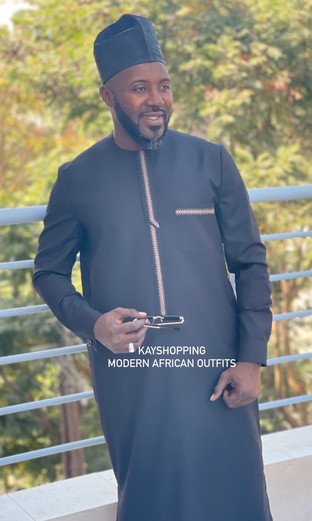 COSTUME AFRICAIN BLEU livré avec un pantalon classique ou avec un cordon de serrage pour plus de facilité. Fabriqué avec de la laine, un tissu très confortable et adapté à tous types de climats.