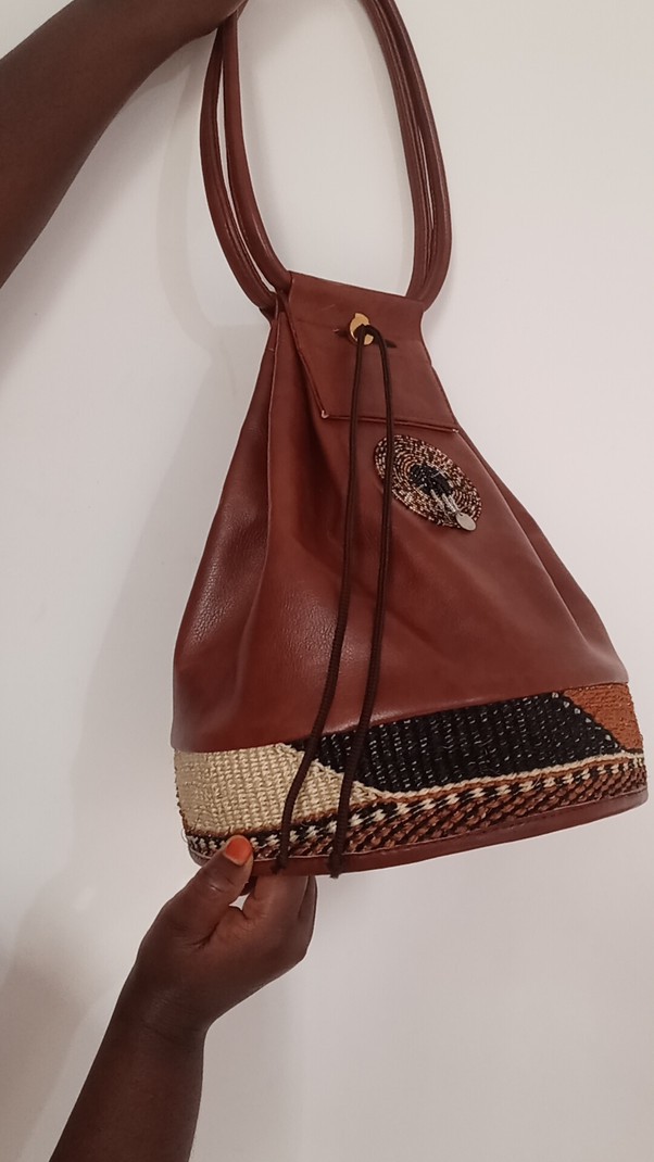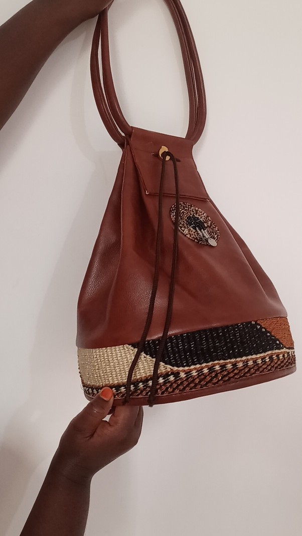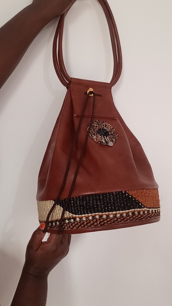 African traditional women bag made using woven sisal and leather can be used as an official bag and also casual bag available in black and also this brown we ship via DHL