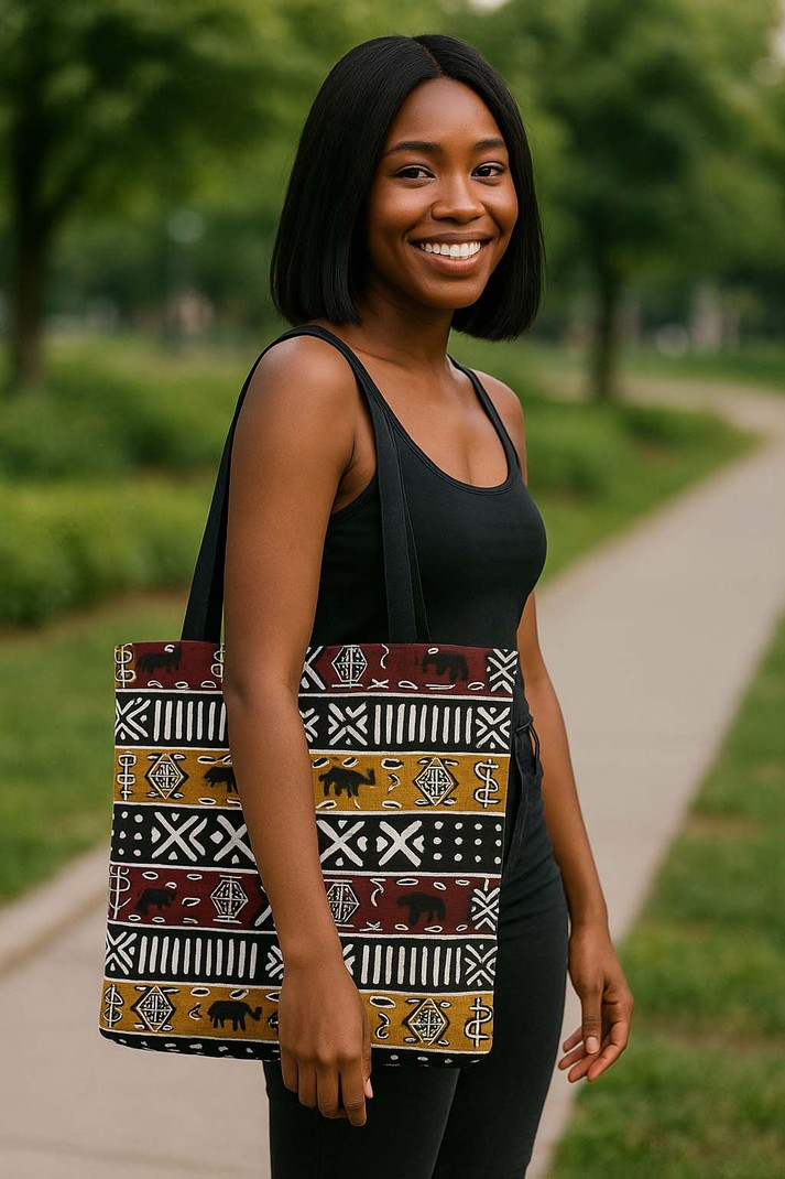 Unleash your adventurous spirit with our African Traditional Tote Bags! Featuring intricate designs and a large capacity, these bags add a touch of abstract fashion to your style. Perfect for those who like to take risks and stand out from the crowd. Upgrade your tote game now! Product Description • 510 g/m2. Made from high-grade canvas. • Durable and roomy enough for your daily items. • Lightweight canvas tote bag with sturdy handle is easy to carry. • Perfect for shopping and carrying your essentials. Delivery Time This item will be processed within 3-7 business days (Excluding Weekends and Holidays). Once products ships it can take up to 15 Business days depending on your location. Out of Stock items can be requested by emailing us at [email protected] Care Instructions Machine wash cold inside out. Gentle cycle with mild detergent and like colors. Do not use bleach or fabric softener. Do not tumble dry. Hang to dry to ensure maximum shelf life. Iron inside out if necessary. Do not iron the print. Do not dry clean.