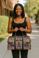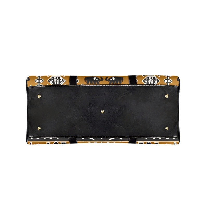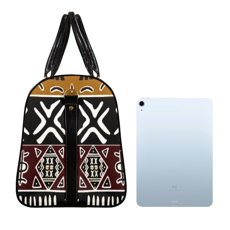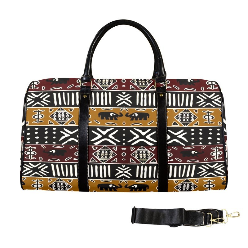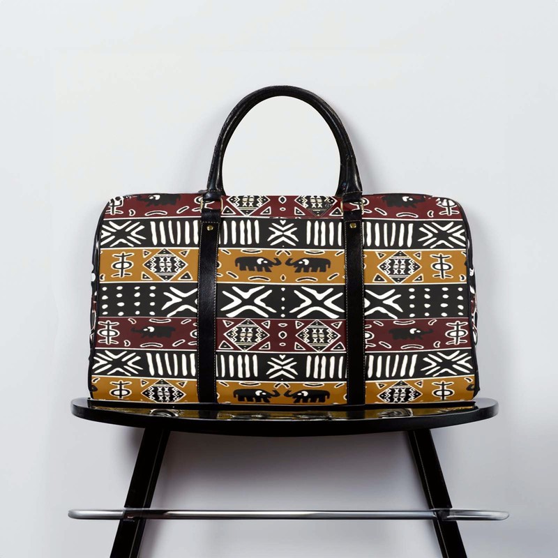Introducing our African Travel Bag, perfect for your next adventure! Made with genuine leather and adorned with traditional mud cloth in a beautiful gold color. Stand out and make a statement wherever you go, while supporting local artisans. Get yours today and embrace the African culture! Product Description * Made of New high-grade PU leather, not easily wrinkled. • Features PU leather top handle and binding for comfortable carrying. • One main compartment, big enough to bring clothing, cosmetic bag, sunglasses • Come with adjustable shoulder strap with metal clips. • Suitable for workout and short-term or long-term travel. • Wipe gently with cloth. Delivery Time This item will be processed within 3-7 business days (Excluding Weekends and Holidays). Once products ships it can take up to 15 Business days depending on your location. Out of Stock items can be requested by emailing us at [email protected] Care Instructions Machine wash cold inside out. Gentle cycle with mild detergent and like colors. Do not use bleach or fabric softener. Do not tumble dry. Hang to dry to ensure maximum shelf life. Iron inside out if necessary. Do not iron the print. Do not dry clean.