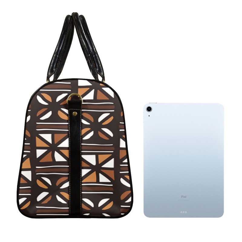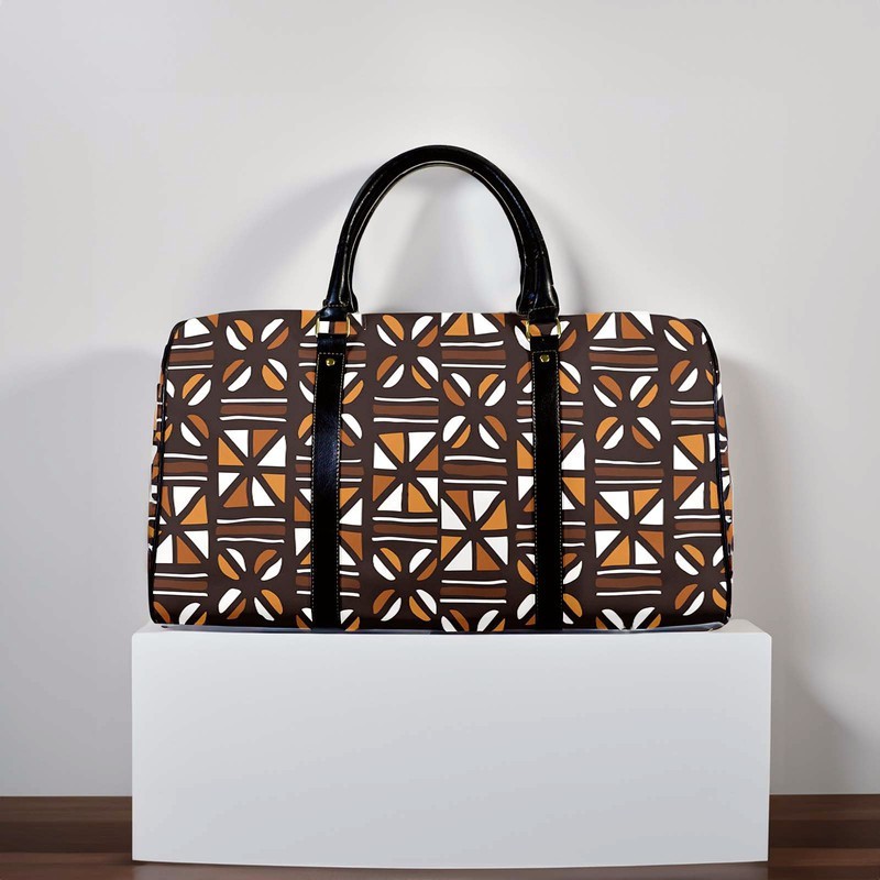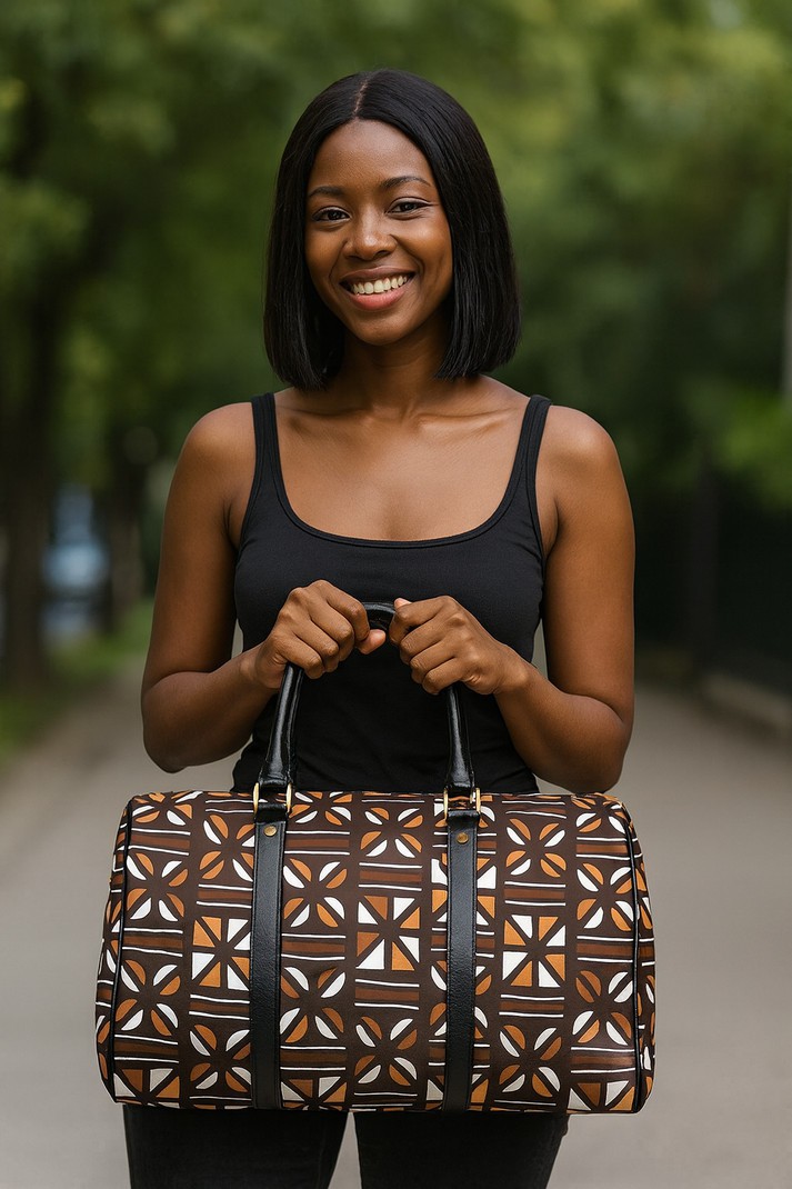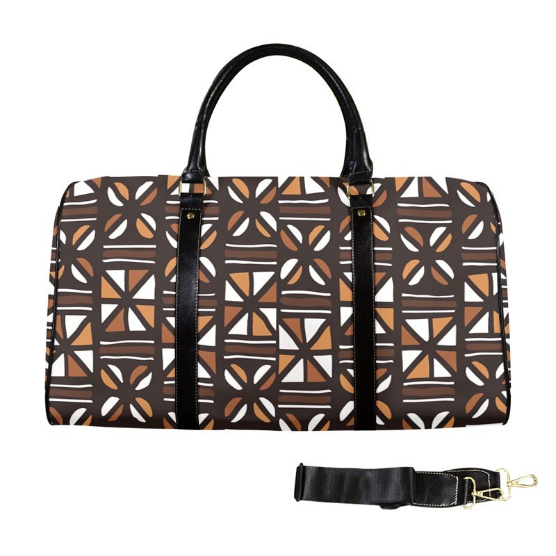 Get ready to embark on an adventure with our African Travel Bag! Made of high-quality leather and adorned with a unique tribal geometric print, this bag combines style, durability, and functionality. Perfect for your next trip or daily wanderers, it's a must-have for any travel enthusiast. (Pack the passport, we're heading out!) Product Description * Made of New high-grade PU leather, not easily wrinkled. • Features PU leather top handle and binding for comfortable carrying. • One main compartment, big enough to bring clothing, cosmetic bag, sunglasses • Come with adjustable shoulder strap with metal clips. • Suitable for workout and short-term or long-term travel. • Wipe gently with cloth. Delivery Time This item will be processed within 3-7 business days (Excluding Weekends and Holidays). Once products ships it can take up to 15 Business days depending on your location. Out of Stock items can be requested by emailing us at [email protected] Care Instructions Machine wash cold inside out. Gentle cycle with mild detergent and like colors. Do not use bleach or fabric softener. Do not tumble dry. Hang to dry to ensure maximum shelf life. Iron inside out if necessary. Do not iron the print. Do not dry clean.
