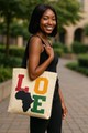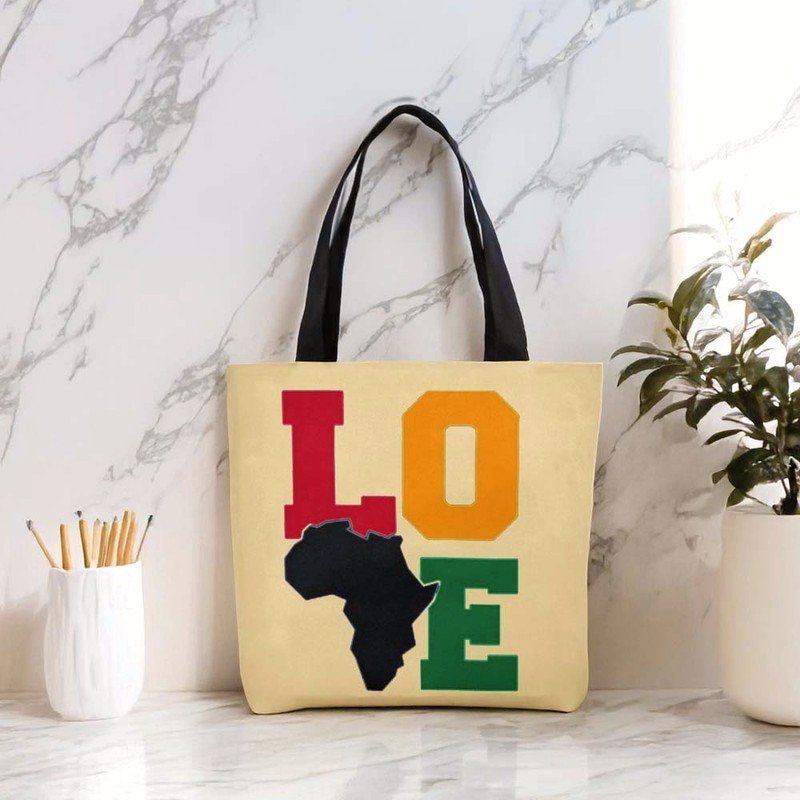 Explore the wild and embrace adventure with our African Tribal Tote Bag! Featuring a unique Love Map Print in an abstract fashion, this bag has a large capacity to hold all your daring essentials. Be bold, be free, and show off your style with this one-of-a-kind tote! Product Description • 510 g/m2. Made from high-grade canvas. • Durable and roomy enough for your daily items. • Lightweight canvas tote bag with sturdy handle is easy to carry. • Perfect for shopping and carrying your essentials. Delivery Time This item will be processed within 3-7 business days (Excluding Weekends and Holidays). Once products ships it can take up to 15 Business days depending on your location. Out of Stock items can be requested by emailing us at [email protected] Care Instructions Machine wash cold inside out. Gentle cycle with mild detergent and like colors. Do not use bleach or fabric softener. Do not tumble dry. Hang to dry to ensure maximum shelf life. Iron inside out if necessary. Do not iron the print. Do not dry clean.