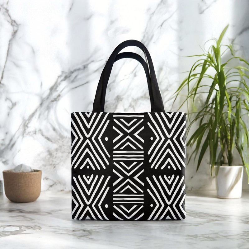 Adventure awaits with our African Tribal Tote Bags! Featuring a bold Zigzag Black and White Print, these bags are perfect for the risk-takers and trend-setters. With a large capacity, you'll have all the space you need for your daily essentials while making a statement. Step out in style and stand out from the crowd with our tribal-inspired tote bags. Product Description • 510 g/m2. Made from high-grade canvas. • Durable and roomy enough for your daily items. • Lightweight canvas tote bag with sturdy handle is easy to carry. • Perfect for shopping and carrying your essentials. Delivery Time This item will be processed within 3-7 business days (Excluding Weekends and Holidays). Once products ships it can take up to 15 Business days depending on your location. Out of Stock items can be requested by emailing us at [email protected] Care Instructions Machine wash cold inside out. Gentle cycle with mild detergent and like colors. Do not use bleach or fabric softener. Do not tumble dry. Hang to dry to ensure maximum shelf life. Iron inside out if necessary. Do not iron the print. Do not dry clean.