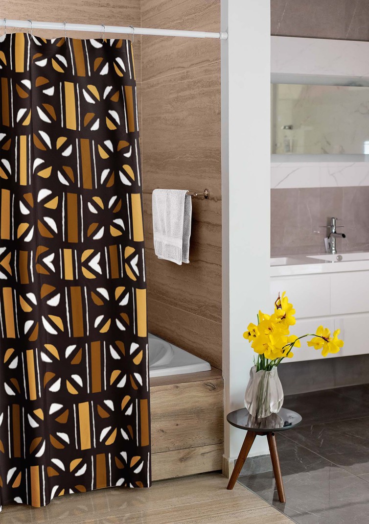 Elevate your bathroom decor with our bold and daring Afrocentric Brown Shower Curtain. Inspired by traditional mudcloth patterns, this curtain adds a touch of risk-taking to any space. Step out of your comfort zone and transform your bathroom into an adventurous haven!