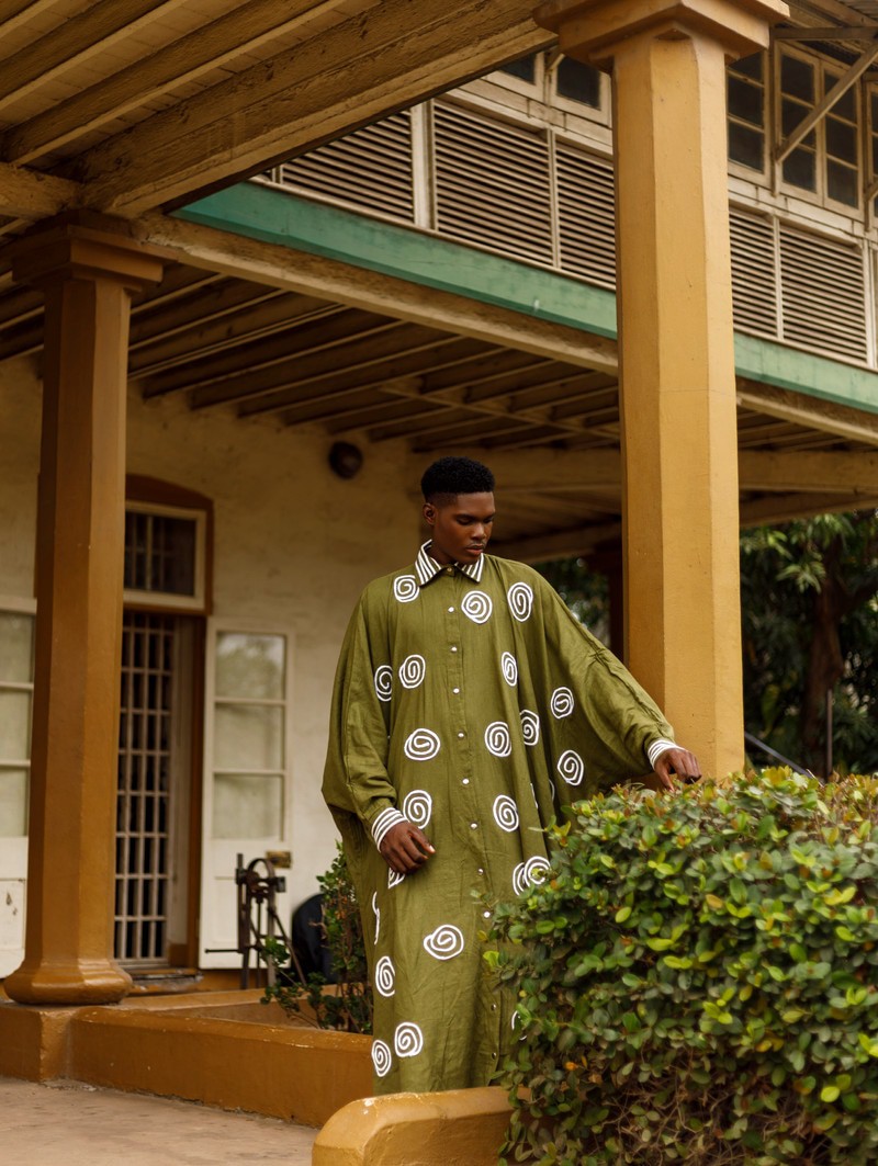 A bold reimagination of tradition, the Agbada Long Dress merges heritage with contemporary elegance. Designed as a universally sized, genderless statement piece, this shirt dress is inspired by the regal Agbada, embodying effortless sophistication.