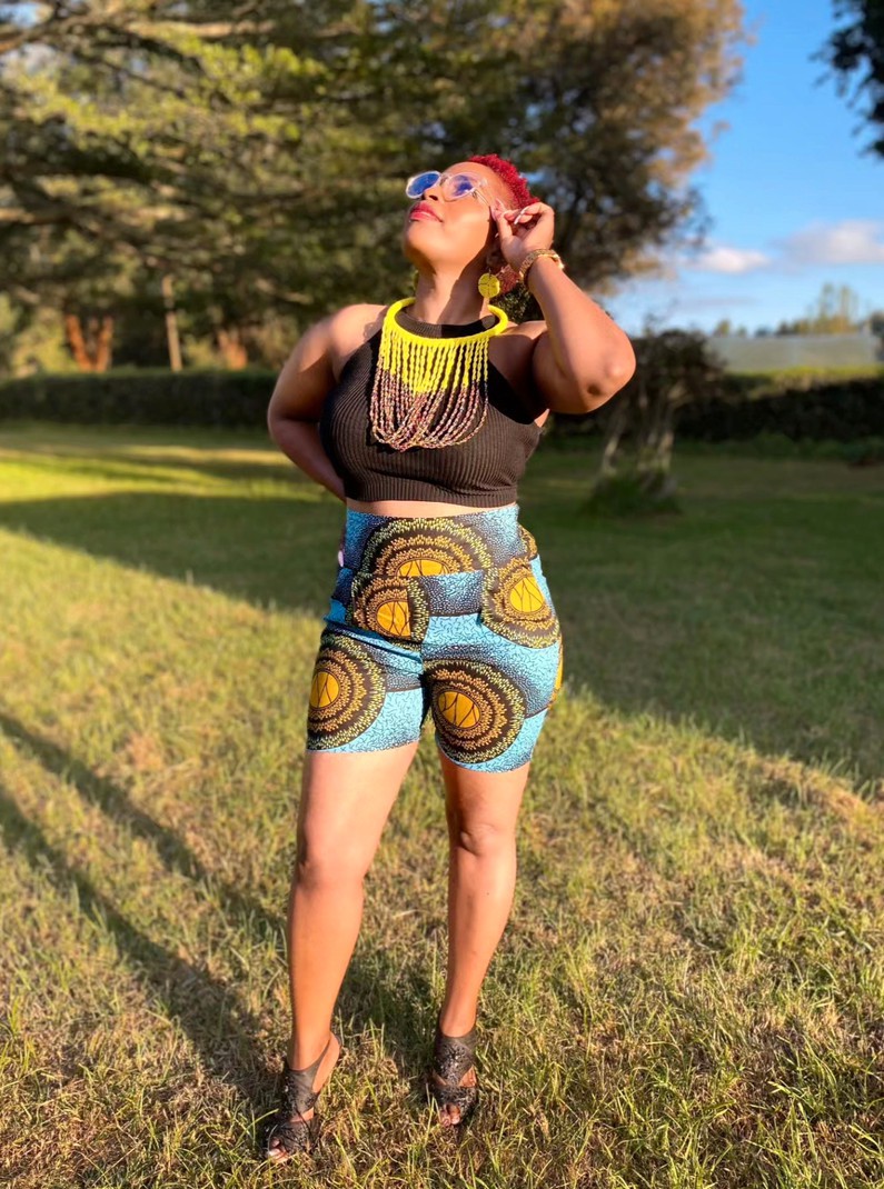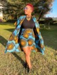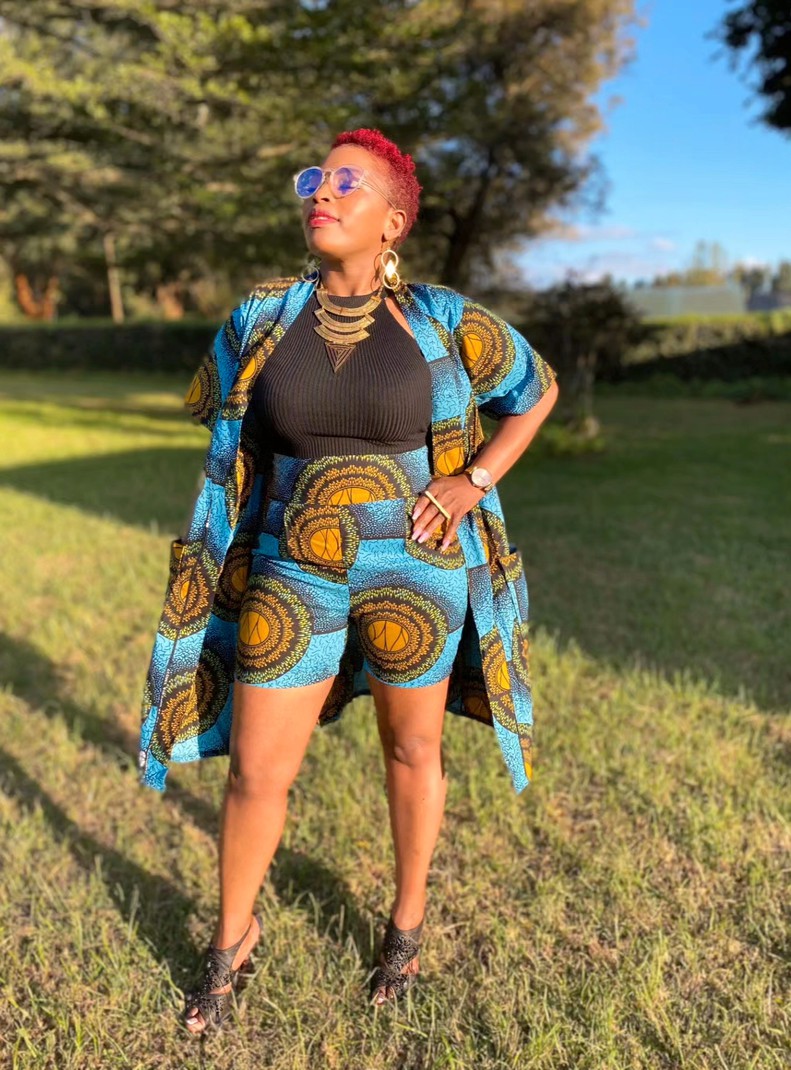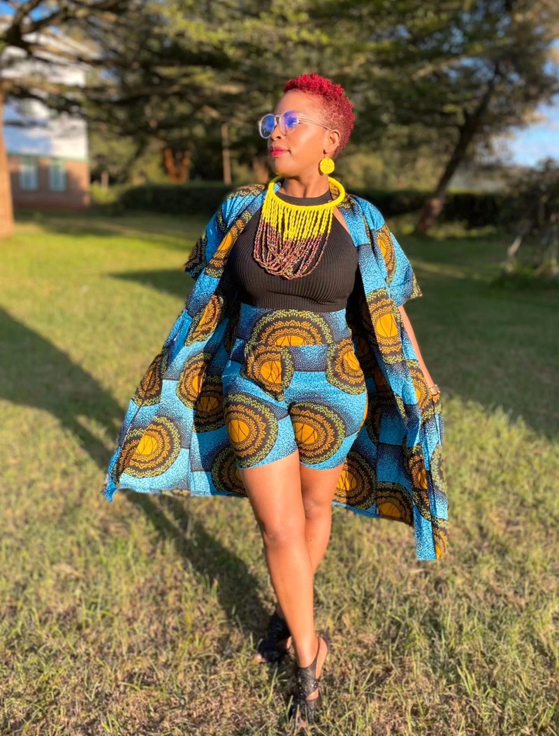 The Almasi Kimono and shorts set is stylish and versatile and can be styled down with a pair of sneakers for a relaxed casual look or with a pair of high heels for a sophisticated look. The set features a short that has a high waist design and a short kimono with pockets. The short can also be styled separately with a black or brown crop top while the kimono can be styled with a dress or a pair of jeans.