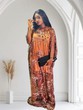 Designed as a high-cut neck flowy long dress with statement sleeves, this piece was handmade from a rare luxury sequin lace fabric that shimmers.