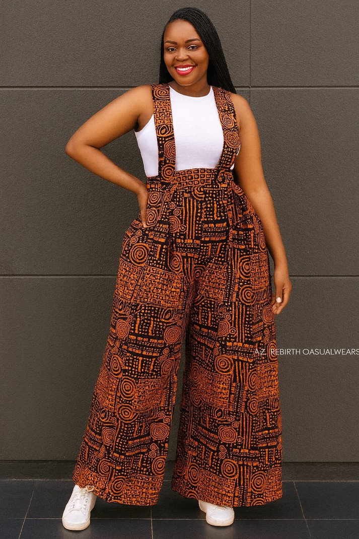 Cette magnifique combinaison est confectionnée en tissu wax africain authentique. Elle se distingue par son pantalon à jambes larges, ses bretelles ajustables et sa coupe confortable qui allie élégance et style décontracté. Idéale aussi bien pour les sorties quotidiennes que pour les occasions spéciales. Disponible en toutes tailles.