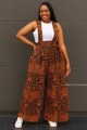 This beautiful jumpsuit is made from authentic African print fabric. It features wide-leg trousers, adjustable suspenders, and a comfortable fit that blends elegance with casual chic. Perfect for both casual outings and special occasions. Available in all sizes.