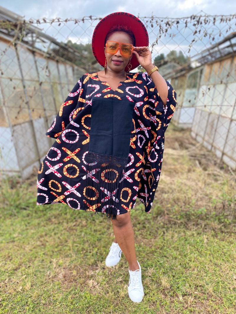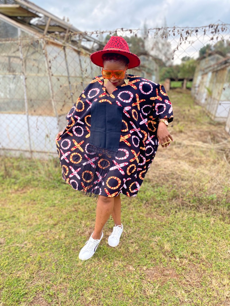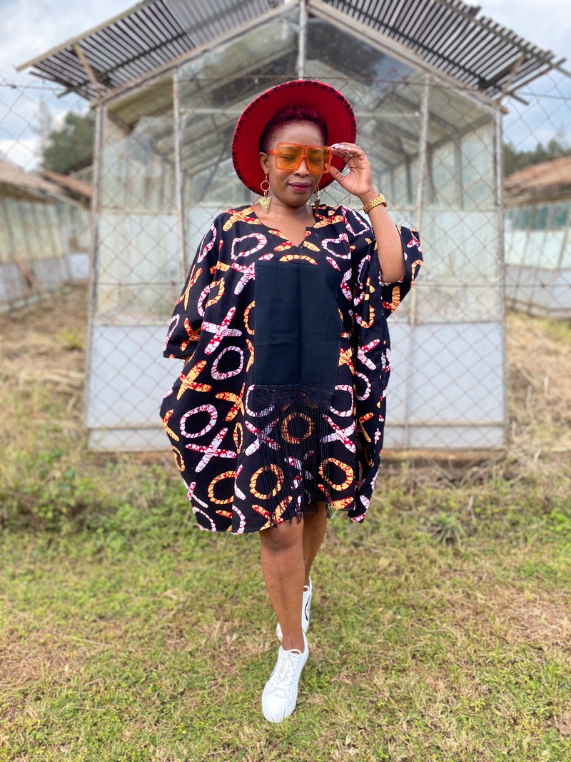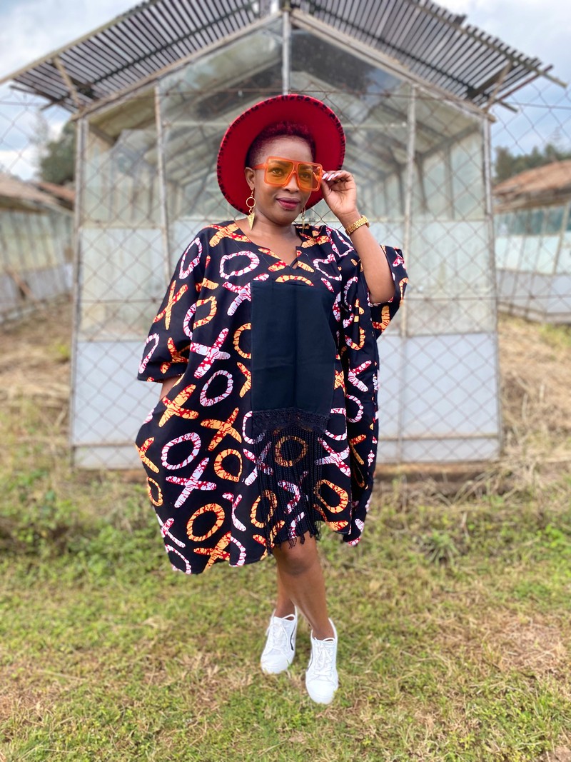 The Ania Ankara boubou dress is made in Kenya using locally and sustainably sourced Ankara Fabrics and features a free size design.