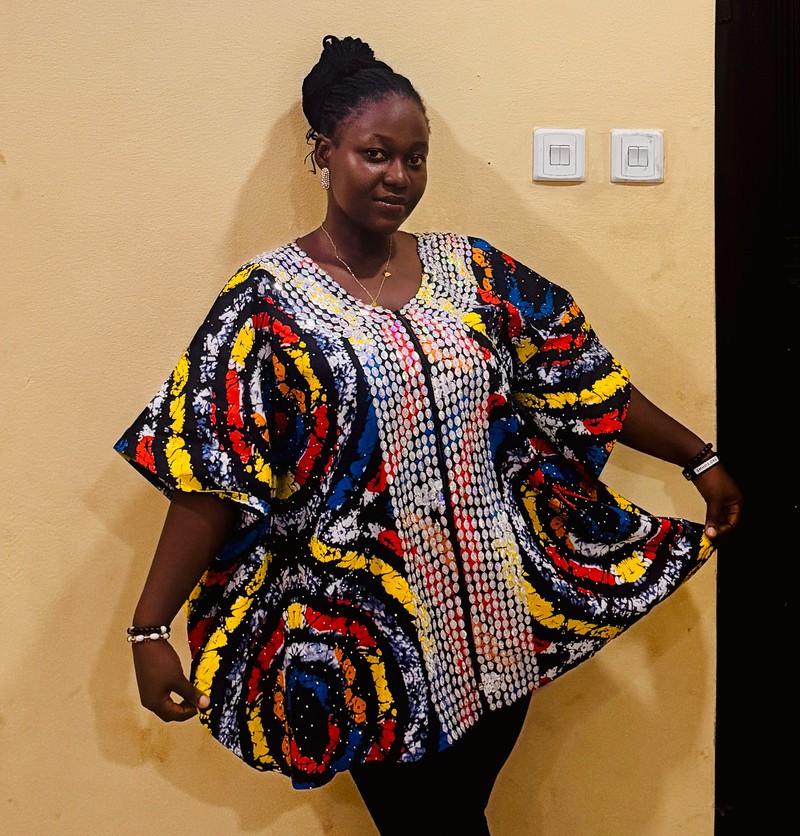 A beautiful beaded top with that’s can be worn on Jean or skirts or plain pants. it’s a boubou top and one size fits all