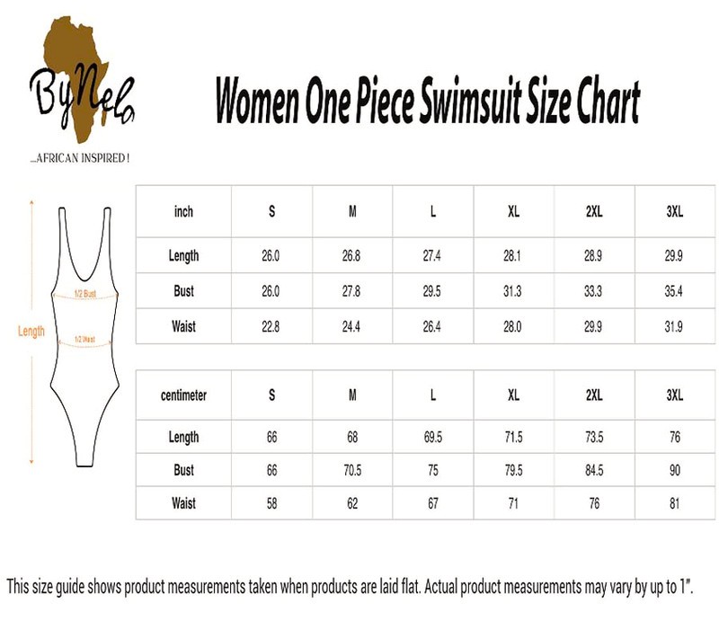 This African Ankara One Piece Swimsuit is perfect for a relaxed, elegant look. The vibrant cotton fabric is sure to make a statement wherever you are, and it offers plenty of stretch for comfort. Enjoy a stylish and comfortable swim with this classic Ankara one piece. Product Features Please Compare your Measurements To our Size Chart before purchase 82% Polyester, 18% Spandex • Fabric weight: 6.61 oz/yd² (224 g/m²) • Chlorine-resistant fabric • Cheeky fit with a scoop neckline and a low scoop back • Zig-zag stitching • Double-layer front • Four-way stretch material stretches and recovers on the cross and lengthwise grains Delivery Time This item will be processed within 3-7 business days (Excluding Weekends and Holidays). Once products ships it can take up to 15 Business days depending on your location. Out of Stock items can be requested by emailing us at [email protected] Care Instructions Machine wash cold inside out. Gentle cycle with mild detergent and like colors. Do not use bleach or fabric softener. Do not tumble dry. Hang to dry to ensure maximum shelf life. Iron inside out if necessary. Do not iron the print. Do not dry clean.