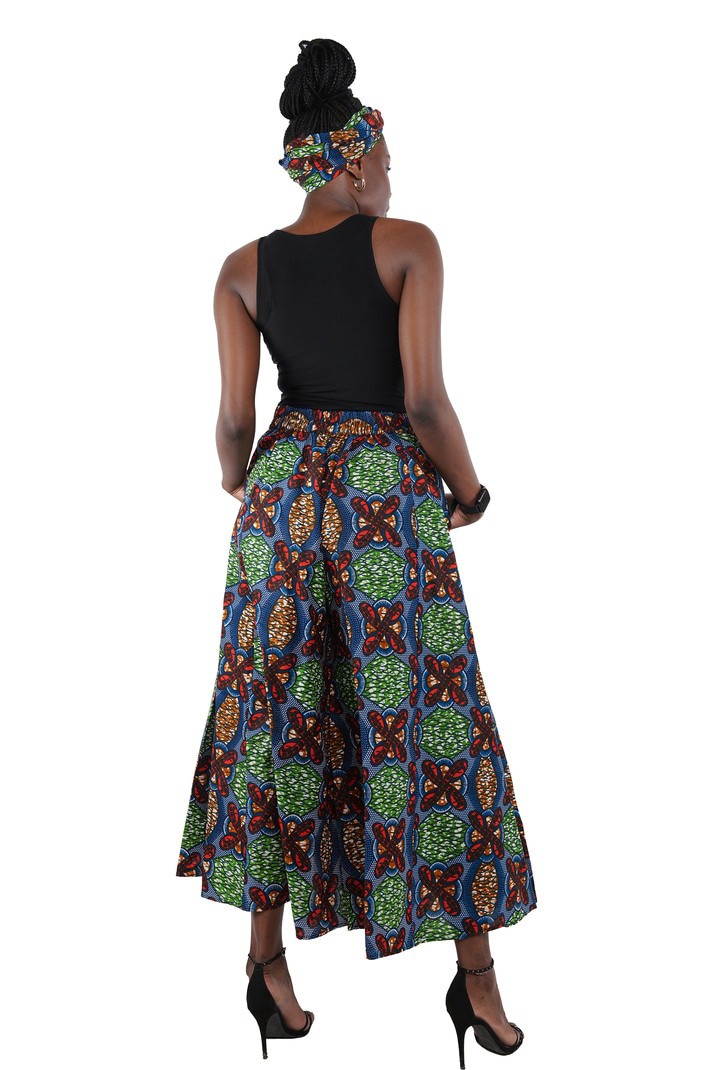 These Ankara Wide Palazzo Pants are perfect for anyone looking to add a dash of African style to their wardrobe. Made from 100% cotton, they feature a comfortable wide leg design and two pockets for convenience. The attached pair of belts adds a stylish touch and can be adjusted for the perfect fit. Elevate your look with these one-size fits all pants!