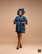 A youthful and vibrant Iro and Buba featuring a bold, all-over pattern of deep blue and crisp white stripes. The short, iro is balanced by wide, three-quarter length kimono sleeves. This piece beautifully highlights the legs while maintaining a demure and cultural flair with its structure and matching, voluminous Gele. Key Features: Mini-length, bold blue and white stripes, three-quarter kimono sleeves, excellent statement piece. Material: Handwoven aso-oke Color: Blue