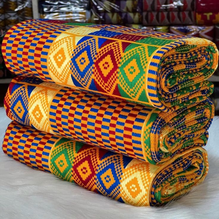 Contact number on WhatsApp +233547804096 Experience the rich cultural heritage of Ghana with this exquisite 6-yard handwoven Kente cloth. Crafted by skilled artisans using traditional techniques passed down through generations, this vibrant and stunning fabric is a true symbol of African pride. Made from high-quality silk and cotton threads, the Kente cloth features intricate patterns and bright, bold colors that represent unity, strength, and prosperity. Perfect for special occasions such as weddings, graduations, and cultural celebrations, this authentic Kente cloth will add elegance and timeless beauty to any wardrobe or home decor. Embrace the spirit of African tradition with this luxurious piece of history.