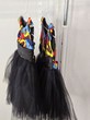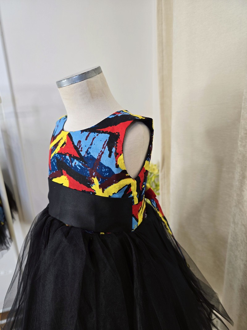 Robe en tissu africain fabriquée au Nigéria. La robe Dera est confectionnée en tissu wax 100 % coton et tulle.