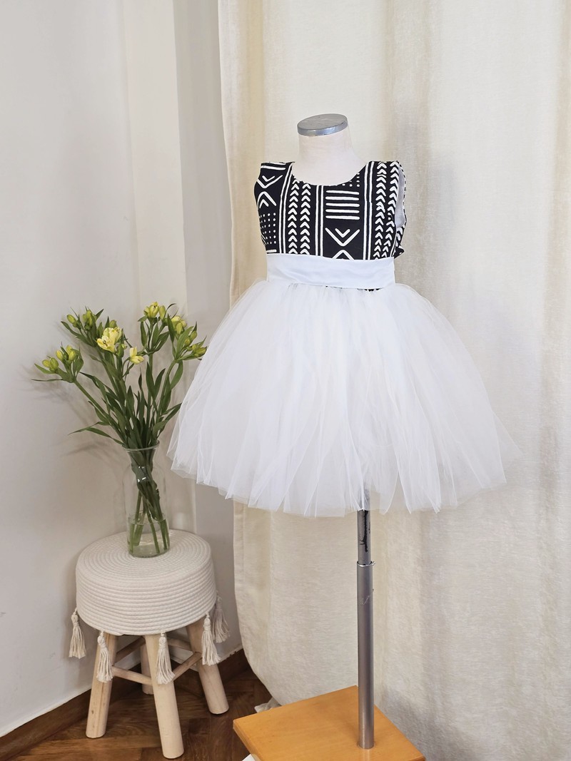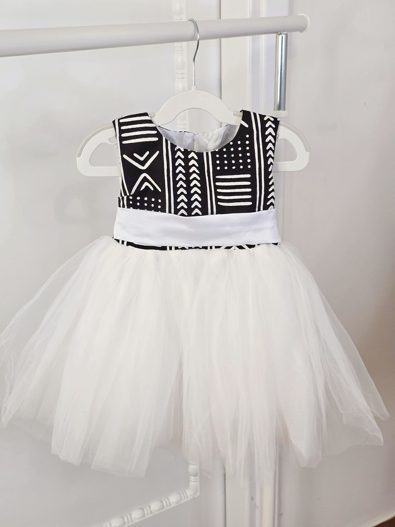 Robe en tissu africain fabriquée au Nigéria. La robe Dera est confectionnée en tissu wax 100 % coton et tulle.