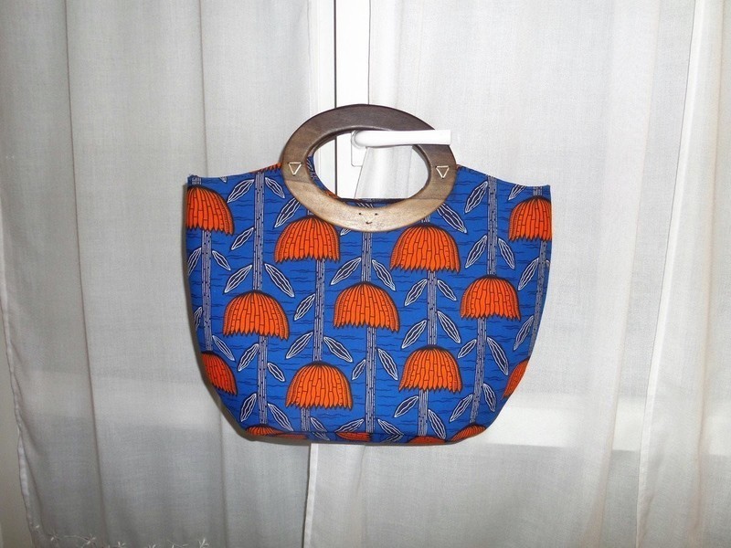 Ce sac rigide fait main a une paire d'anses originales en bois d'ébène.